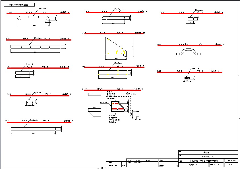 部品図は組立図で記されている各部品の詳細が書かれている図面です。